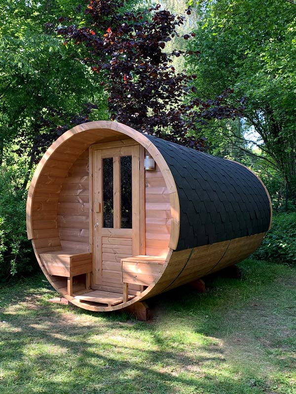 Saunas extérieurs de différentes tailles et formes