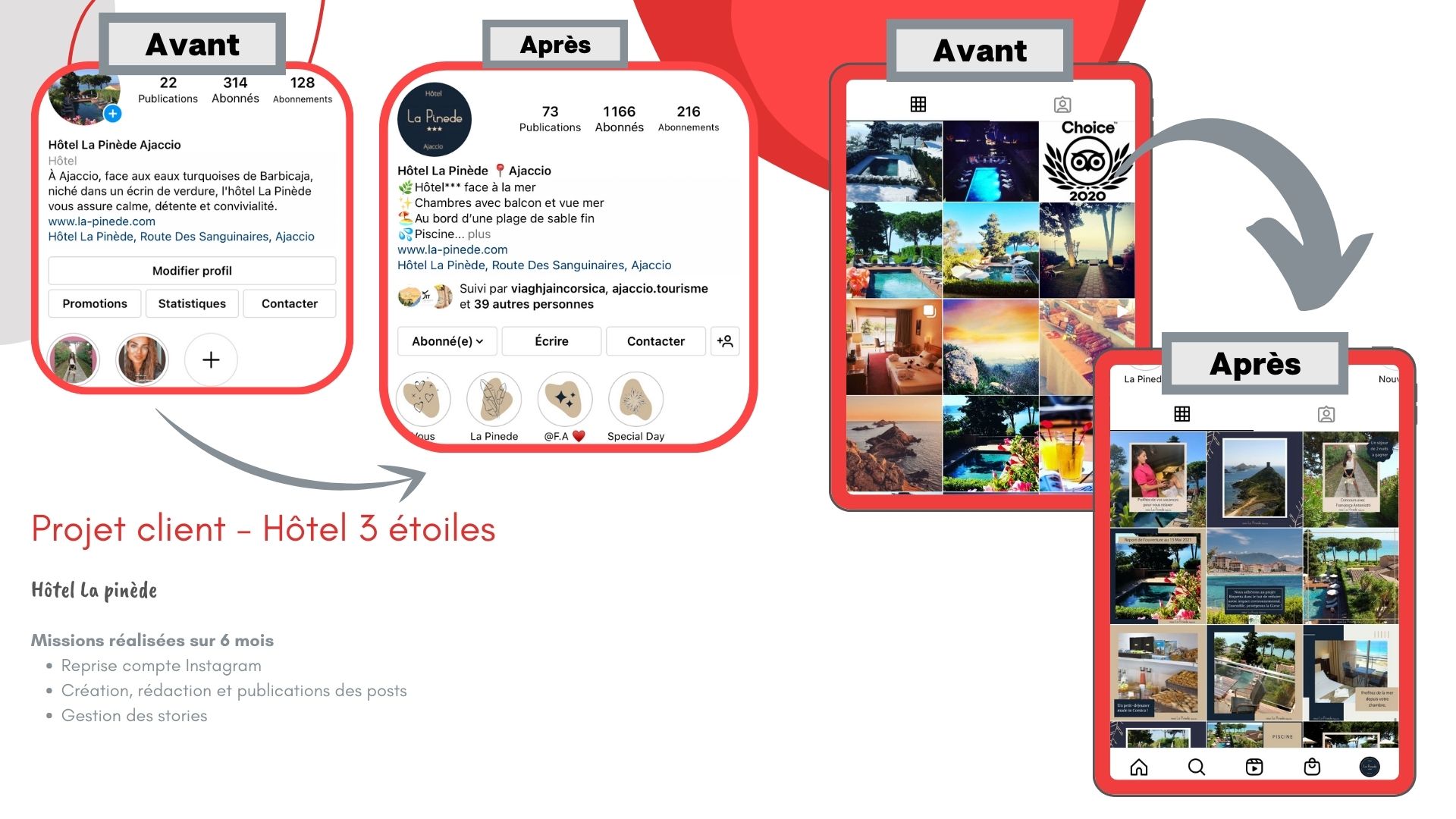 Pour ce faire, je crée votre stratégie social media pour développer votre image de marque, et publier du contenu de qualité et impactant sur vos différentes plateformes. dans le but de développer votre visibilité et booster vos réservations.