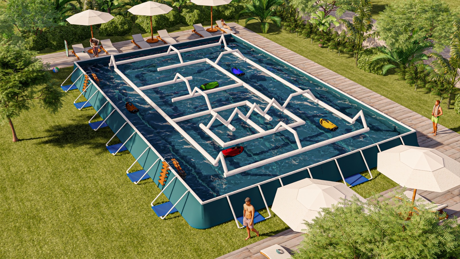 Les circuits Sea-Maze permettent de sécuriser l'utilisation de propulseurs électrique, adapté à tout le monde de 2 à 99 ans, sans danger, non polluant et très maniable.